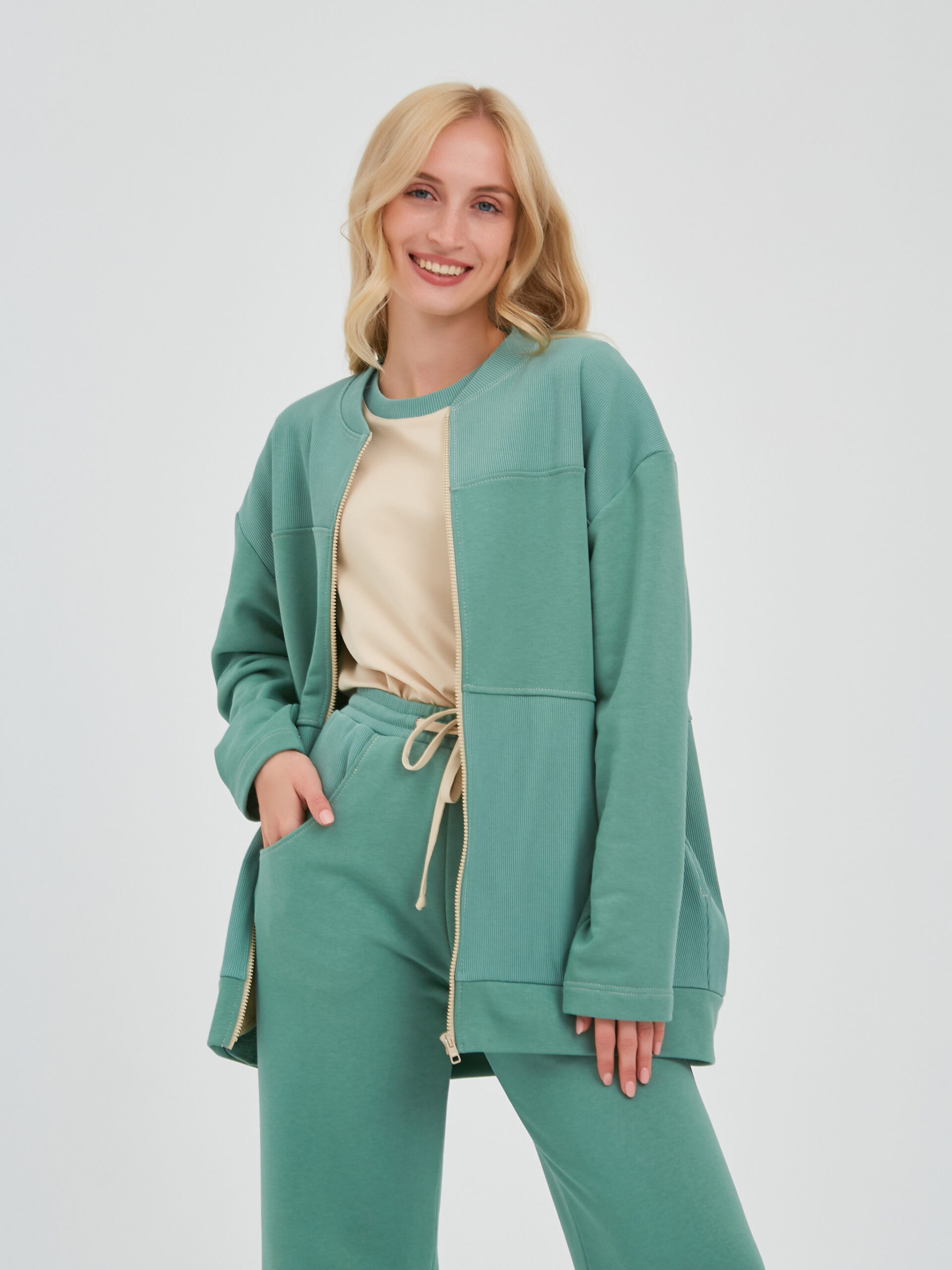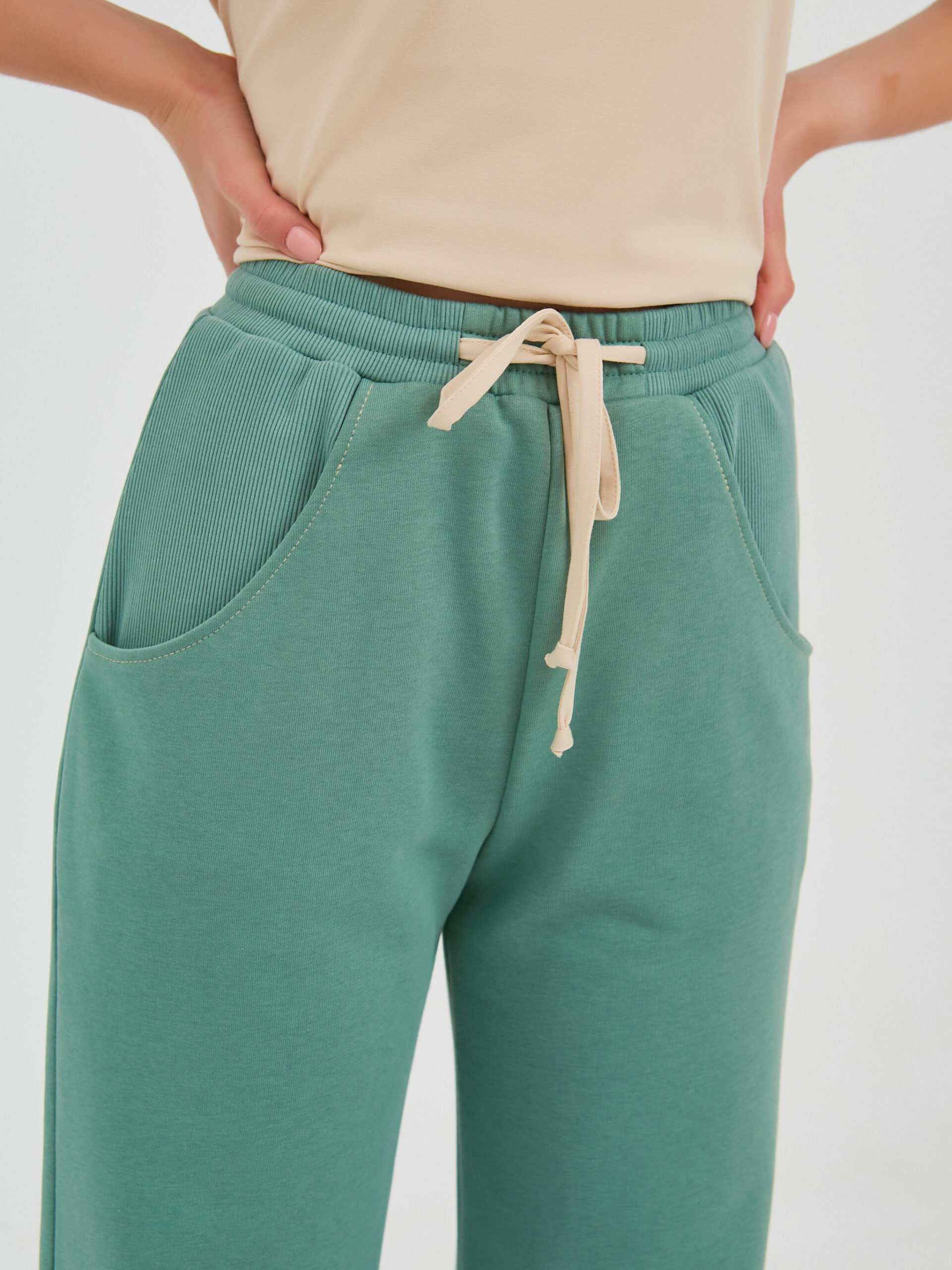 На талии комфортная резинка. Посадка высокая. Карманы в боковых швах.
