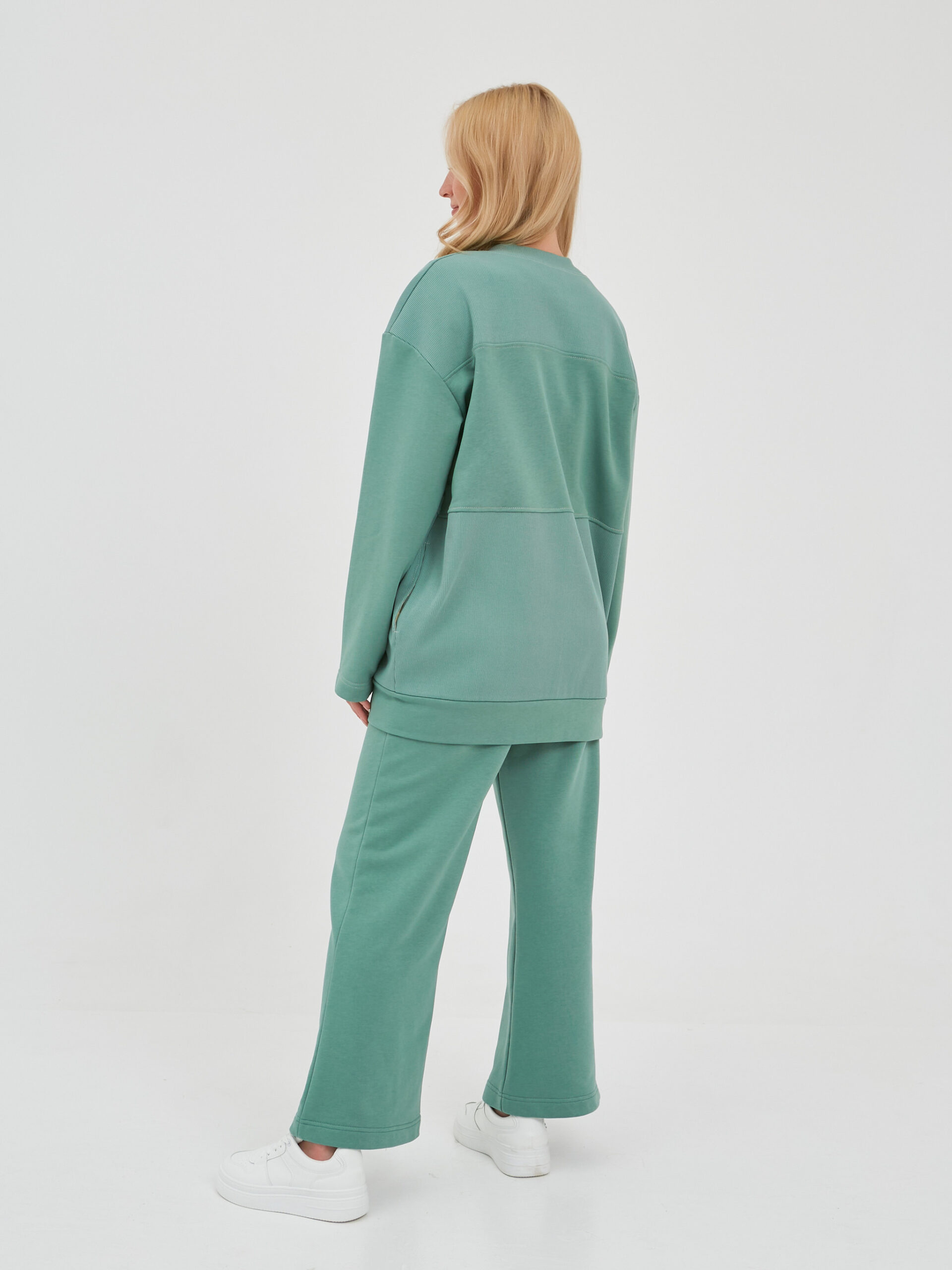 Брюки прямого широкого кроя.