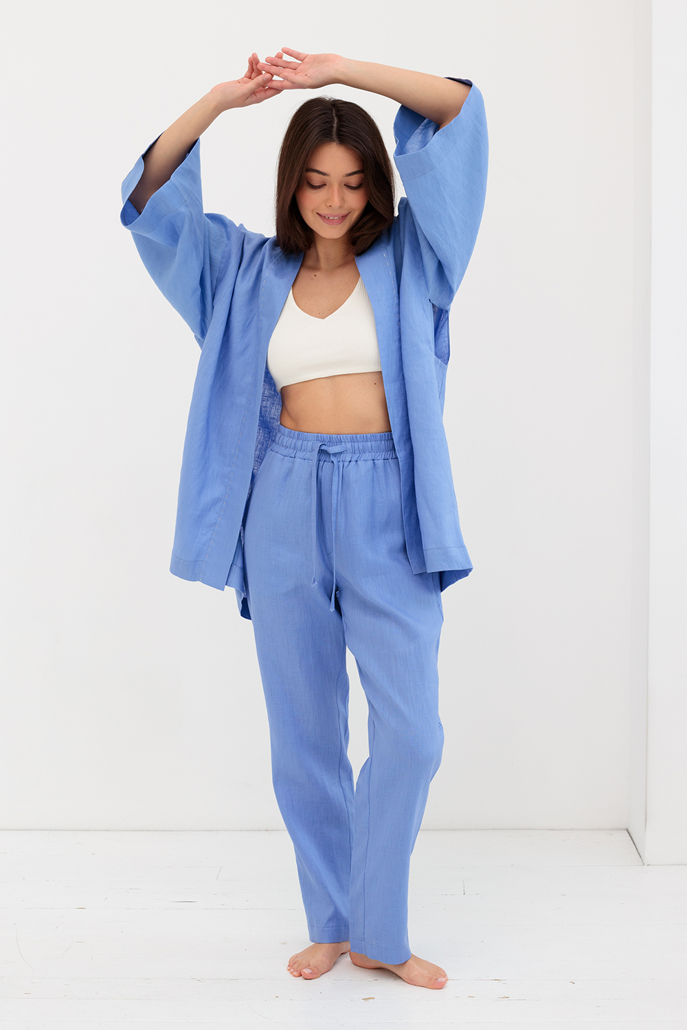 Сочетаются с кимоно и льняной рубашкой. В тандеме создают легкий костюм для летнего отдыха, медитаций и домашнего использования.