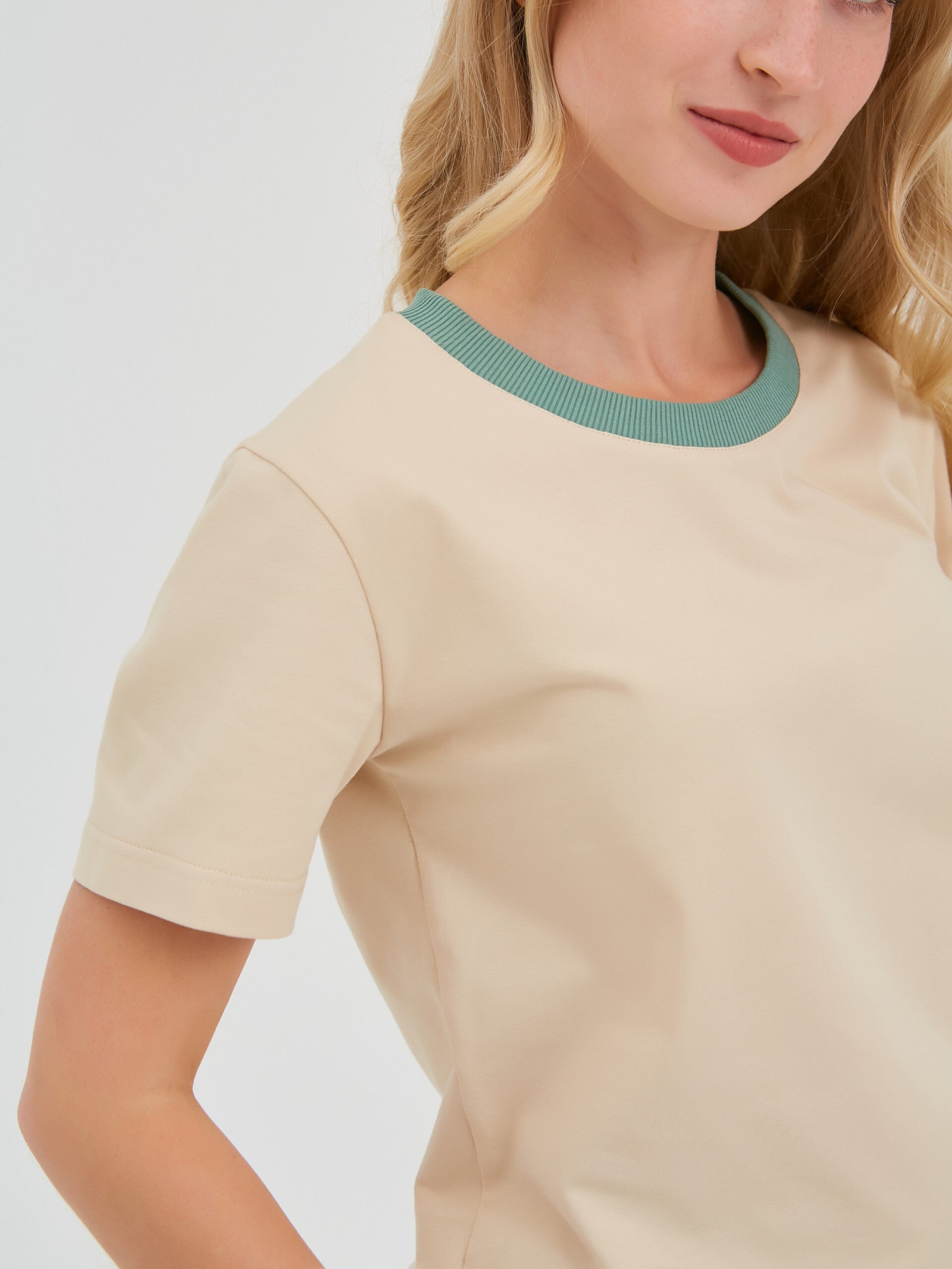 Базовая классическая модель приталенного кроя с коротким рукавом и округлым вырезом.<br /Создаст оригинальный образ и будет любимой вещью в гардеробе современной девушки.