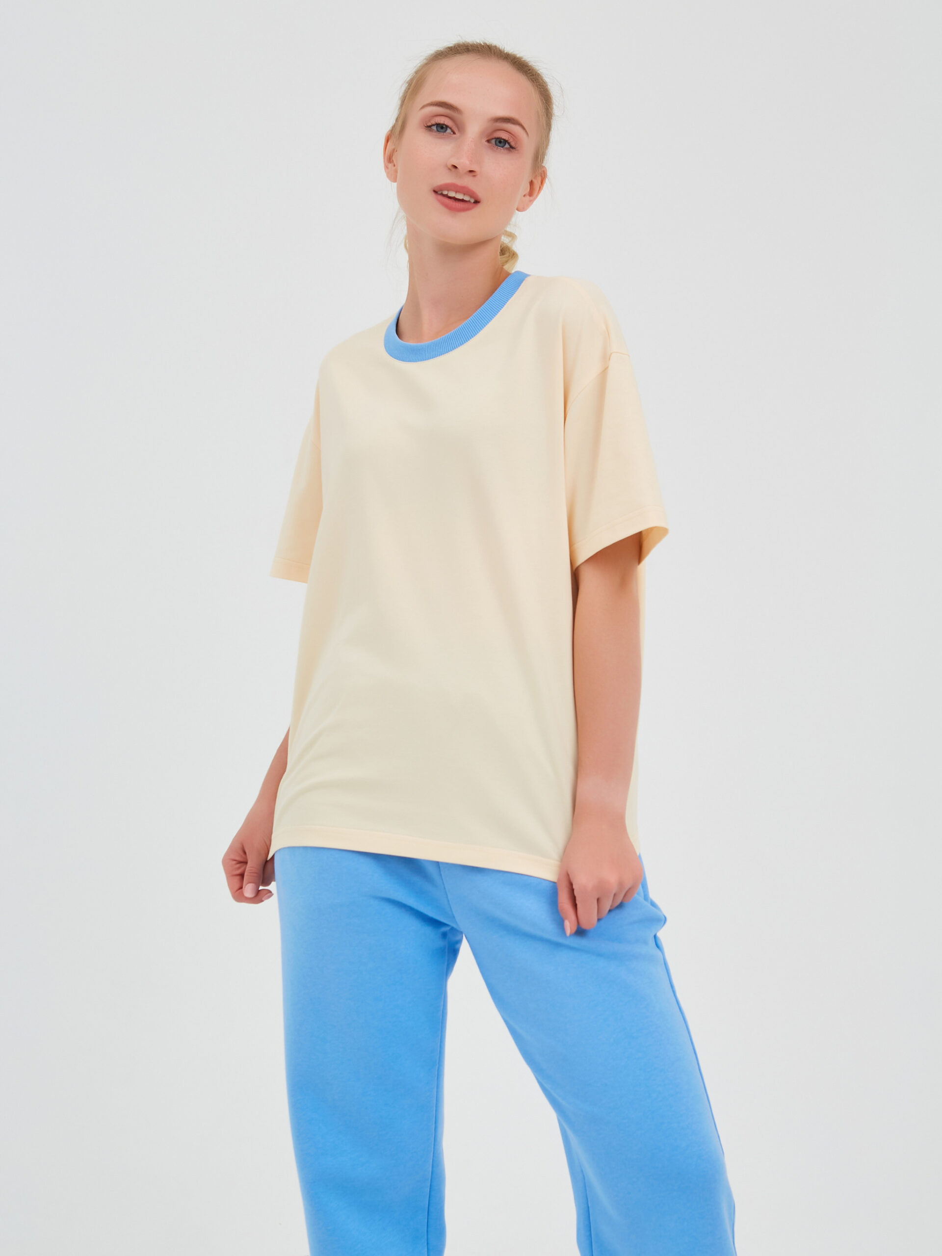 Базовая футболка свободного кроя.