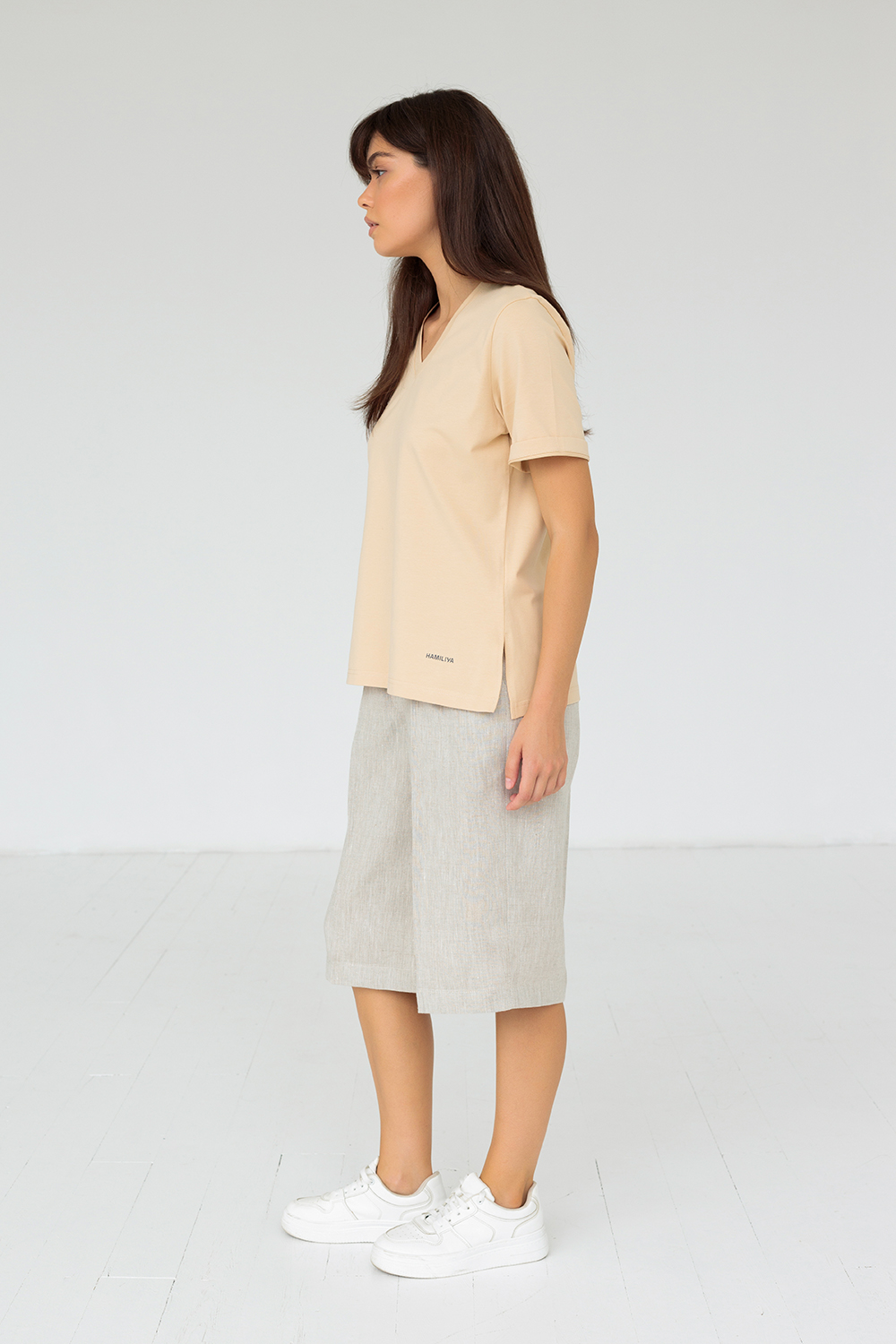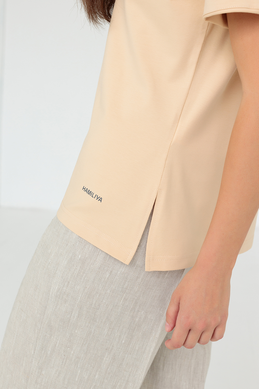 На футболку нанесены Логотип HAMILIYA и "Цветок жизни".