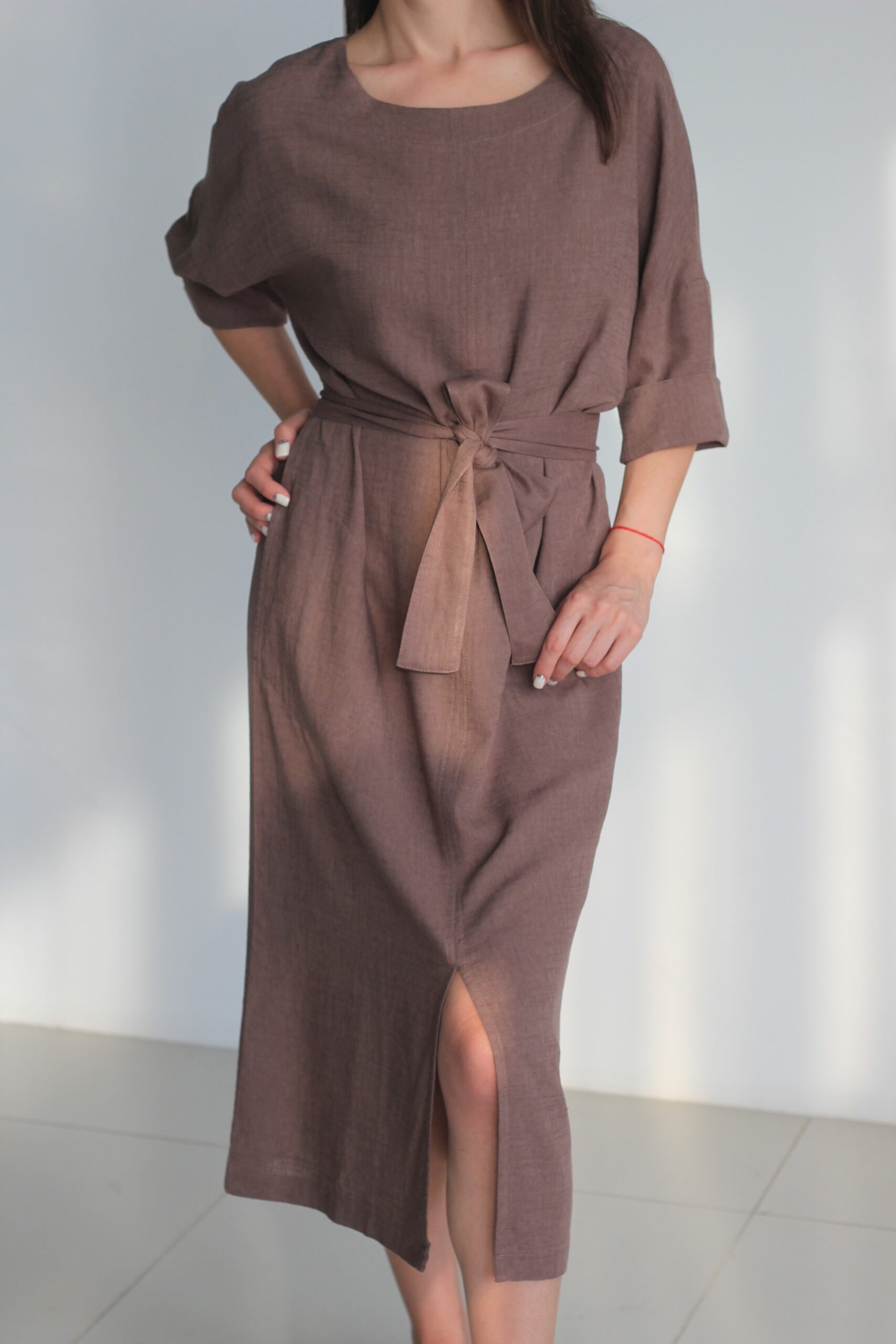 Платье свободного кроя из натуральной ткани. Идеально подойдёт для отдыха и вечерних прогулок.