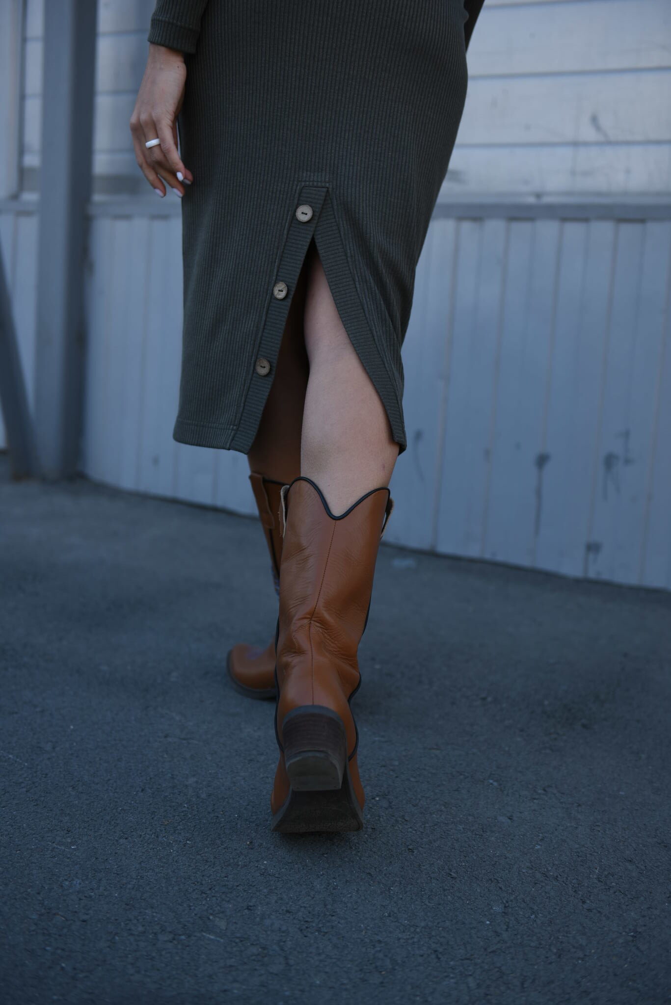 Лаконичная, однотонная модель юбки длиной ниже колена, облегающая и приталенная - отличная база под водолазку.